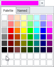 To pick a color by typing RGB values, click the drop-down arrow on the color field to display the Color dialog box, and with the Palette tab displayed, right-click a blank chip at the bottom of the tab as depicted below to display the Color gradient window where you either click to select a defined basic color, or type values in the Red, Green, Blue box and then click OK to replace the original color in the Application Settings dialog box with this one.