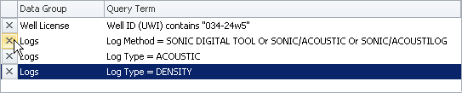 - Append - attach the criteria formulated above to the criteria currently selected in the Query Builder pane with an OR Boolean operator. This option only becomes available after the first query phrase is created. Only criteria from the same data field can be appended. When criteria is appended, the