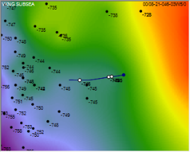 ) and then click to place a control marker at the depth at which to move the active top. Move control markers to either a different depth or to a different horizontal location along the formation top by first clicking Show Off-Well Top Points (