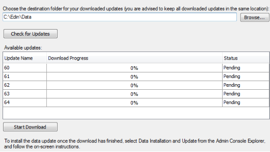 1. Using the Admin Console navigation tree, click Download Data Updates.