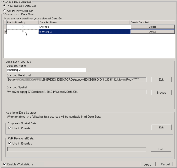 Select the existing, active data set in the View and edit detail... pane, and then review the Data Set Properties pane to determine the paths to the active spatial and relational data sources (and the root directory of well and field images, and basin monitor PDFs for International installs). You will want to point to different data sources with the data set you're about to create.