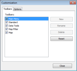 The Customization: Toolbars dialog box appears.