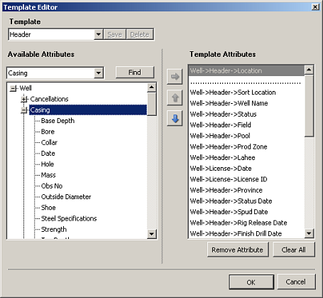 To locate attributes in the Available Attributes pane to add to the Template Attributes pane, using the box that appears above the Available Attributes pane, type words or letters that appear in the attribute name and then click Find or press ENTER. Click Find or press ENTER repeatedly to scroll through similar attribute names.