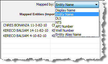 In the Map Entities dialog box, individual wells are displayed according to the option you select in the Mapped by drop-down list: