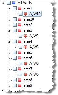 In the Database Connection Tool Well Tree (similar to the Entity Viewer) individual wells appear as an asterisk followed by the well name: