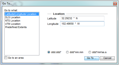) on the toolbar provides a variety of options for zooming into a map area, such as selecting a Latitude/Longitude Location.