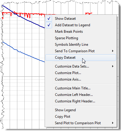 If you want to copy a single dataset from a plot rather than all data on the plot, right-click the dataset (not the plot) and select Copy Dataset and then Paste Dataset.