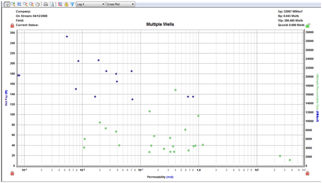 A cross plot displays data as a collection of points, each having the value of one variable determining the position on the horizontal axis, and the value of the other variable determining the position on the vertical axis. This is also known as a scatter plot. These plots are most commonly used for identifying trends or relationships between different variables.