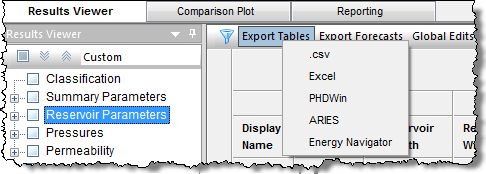 Clicking Export Tables opens a drop-down menu of the different file formats you can export data to. For more information, see Exporting Tables.