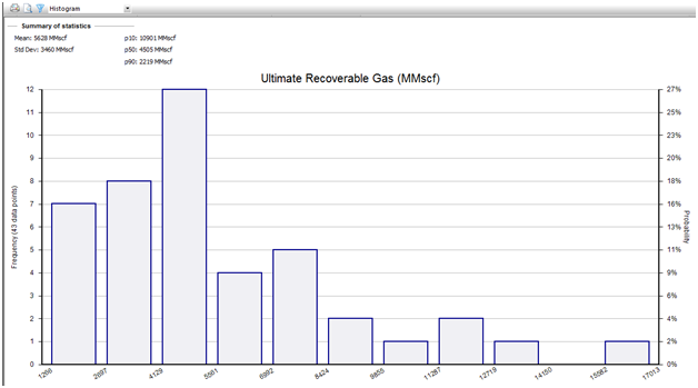 A summary of statistics is displayed just above the histogram. This summary calculates the mean, standard deviation, and P10 / P50 / P90 values of the selected dataset.