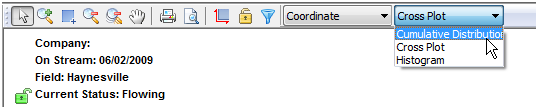 Similar to Grid View, only the analysis data from selected entities in the Entity Viewer is displayed. There are three plot types: cumulative distribution function, cross plot, and histogram.