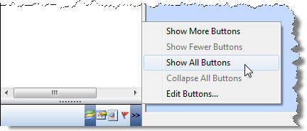 To show the buttons when they are minimized (collapsed), click the >> button, then select Show More Buttons or Show All Buttons.
