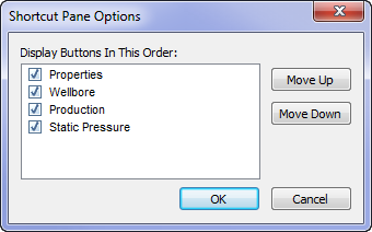 Selecting Edit Buttons... opens the Shortcut Pane Options dialog box.
