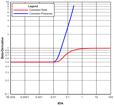 Figure 1: Beta-derivative plot for constant rate and constant pressure production