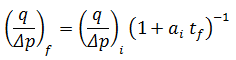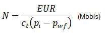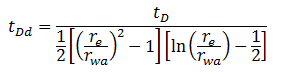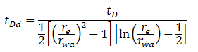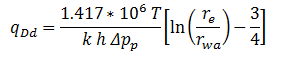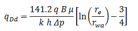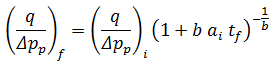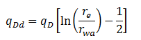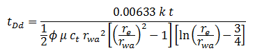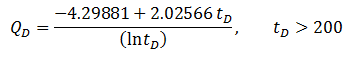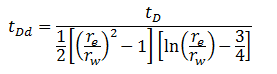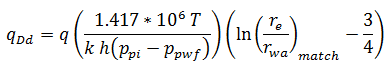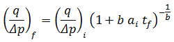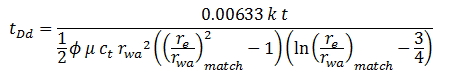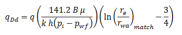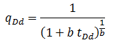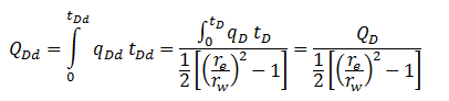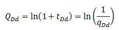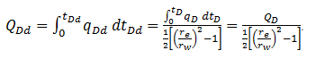 The well test-based dimensionless cumulative production (QD) and dimensionless time (tD) are converted to decline-based dimensionless cumulative production (QDd) and decline-based dimensionless time (tDd) by: