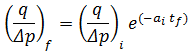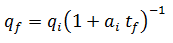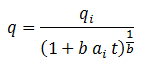The constant qi for use in the exponential decline equation at t = 0, (qDd = 1) can be calculated from: