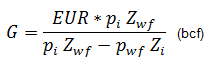 Fraim and Lee (1987), and Spivey et al. (1992) provide detailed equations for generating the transient and the boundary-dominated stems of the cumulative production typecurves. Transient flow rate and cumulative production are reported as functions of time by Edwardson et al. (1961). The cumulative values are given by: