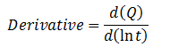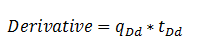 Spivey et al. showed that typecurves of cumulative production can be combined with their (semi-log) derivative to give a set of typecurves that uses only cumulative production data and not rate. Because cumulative production tends to be much smoother than the original rate data, these plots tend to have less scatter than the traditional Fetkovich typecurves. The derivative typecurves are obtained from: