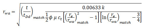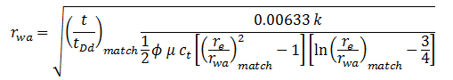 Solve for apparent wellbore radius from the definition of dimensionless decline time: