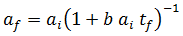 Using the definitions of dimensionless decline rate and dimensionless decline time in combination with the exponential decline equation, it can be shown that the exponential decline rate (a) is given by: