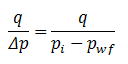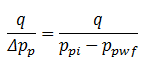 The Fetkovich typecurve matching equations can be extended for use with production at variable flowing pressure. Instead of simply plotting production rate, normalized rate (q / ∆p) is plotted.