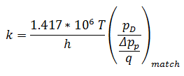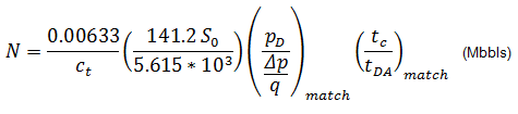 Given a curve match, the following reservoir parameters can be obtained if net pay, total compressibility, and wellbore radius are known: permeability, skin (or fracture half length, depending on which model is chosen), area, and original fluids-in-place.