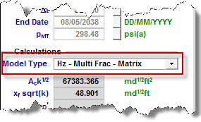 Once the value for the linear flow parameter is calculated, it can be interpreted differently depending on the type of completion. With URM analysis, three types of completion are selectable from the Model Type drop-down list.