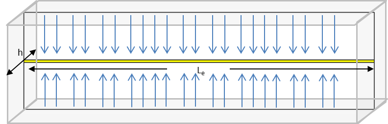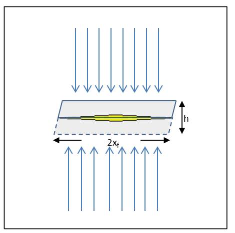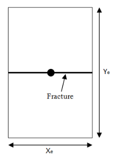 In this case, it is assumed that the well is being produced through a single fracture. We can observe linear flow towards the fracture from both sides. The total area to flow (Ac) can be calculated as: