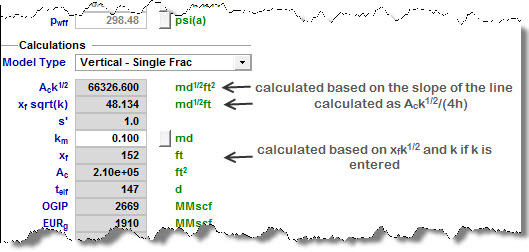 From the slope of the equation, fracture half-length and permeability are determined as a single product. To determine either explicitly, the other parameter must be known.