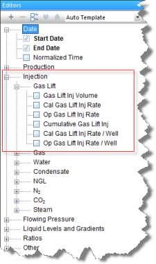 1. Under the Production node, click Gas. This is gas produced from the reservoir. If you have gas lift operations, this is a “net produced gas”; which is gas produced from the well minus the gas injected for gas lift.