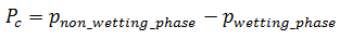 Capillary pressure (Pc) is the pressure difference across the interface between two immiscible fluids arising from the capillary forces. These capillary forces are surface tension and interfacial tension. In porous media, the capillary pressure is the difference between the pressure in the non-wetting phase and the pressure in the wetting phase. It is defined by: