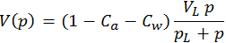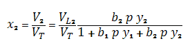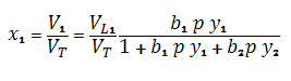 where p1 and p2 are partial pressures of component 1 and 2 given by:
