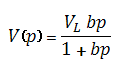 The Langmuir pressure, or critical desorption pressure, is the pressure at which one half of the Langmuir volume can be adsorbed. As seen in the diagram below, it changes the curvature of the line and thus affects the shape of the isotherm.