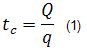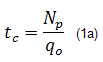The symbol tc has been adopted as it represents a corrected time based on cumulative production. It is also similar to the corrected "Horner" time that is used in build-up analysis in well testing, for correcting the effect of a varying flow rate. It is the value of time that a well would have to flow at the current rate in order to produce the same amount of fluid (and hence honour the material balance principle). In the illustration below, the cumulative production is represented by the area under the graph. The definition of material balance time is such as to make these areas the same.