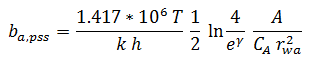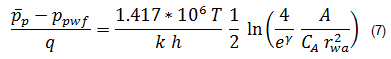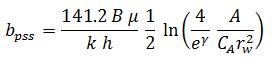 Although Equation (4) was derived for constant rate (variable pwf), Blasingame and Lee (1986) showed that it is also valid when the bottomhole pressure is constant (variable rate). Combining the material balance Equation (3b) and the steady state flow Equation (4) gives: