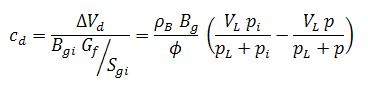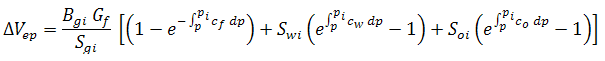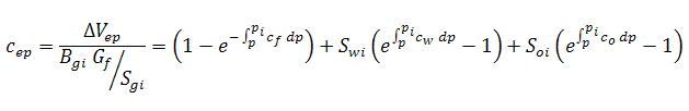 The relative change of the pore volume due to water influx and production, formation and residual fluid expansion, and desorption of gas (cwip, cep and cd, respectively), can then be defined as: