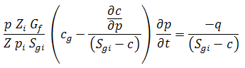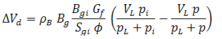 Refer to Material Balance Analysis Theory - Gas Material Balance for the general gas material balance equation. The general gas material balance equation can be expanded to include water influx and production, formation and residual fluids compressibilities, and desorption of gas (∆Vwip, ∆Vep and ∆Vd, respectively) as follows: