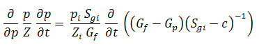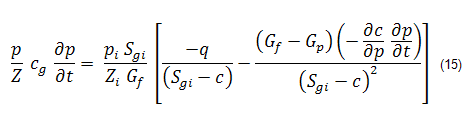 The application of material balance time to gas is more complex than it is to oil because of the varying PVT properties of gas. Accordingly, the simple concept of material balance time given by: