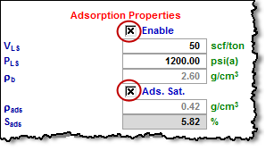Enabling the Ads. Sat. correction will result in an adsorbed saturation (Sads) being calculated, which will in turn be subtracted from the original gas saturation (Sg). This corrected gas saturation will now be used in the volumetric calculations to calculate a new free-gas OGIP.