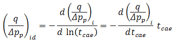 The rate integral derivative is defined as the semi-logarithmic derivative of the rate integral function, with respect to material balance time. It is defined as follows: