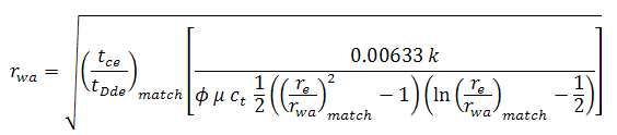 Solve for apparent wellbore radius (rwa) from the definition of tDde: