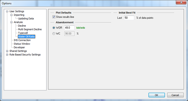 ) on the main toolbar, or by clicking the Tools menu and selecting Options. In the Options dialog box, click Water Oil Ratio under the User Settings>>Analysis node.