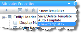 - After you have customized the table / grid display to your liking (for example, showing or hiding attribute properties and re-ordering the category headers), you can save your configuration as a template for re-use. Click the drop-down arrow on the toolbar and select Save / Delete Template. To load a previously saved template, select it from the drop-down list.