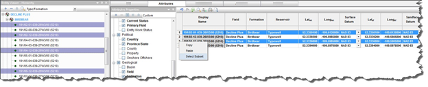 can export this table to a .csv file. Some of the information displayed (for example, Reservoir or Operator name)