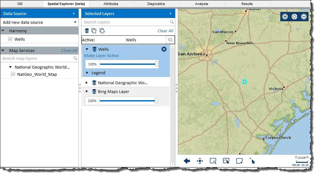 By default, the Harmony / Wells layer is selected, which displays your selected wells on the map.