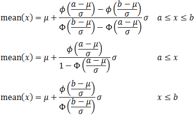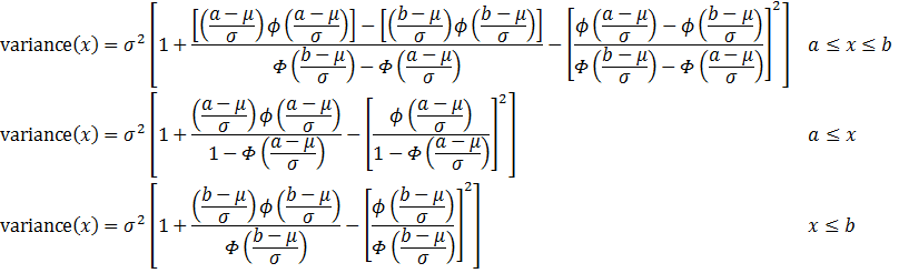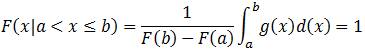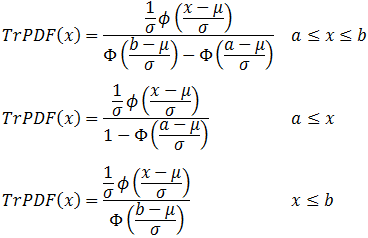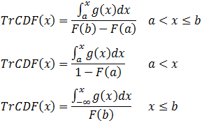 Assuming that a random variable x has a probability density function of f(x) and a cumulative distribution function of F(x), which both have infinite support (– ∞ < x < ∞), then the probability density function after truncating the support to a < x ≤ b can be expressed as: