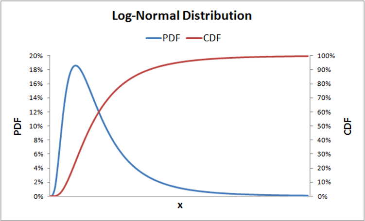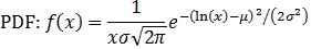 A log-normal distribution is the probability distribution of a random variable whose natural logarithm follows a normal distribution. The log of a set of data that follows a log-normal distribution follows a normal distribution. As such, it should be noted that μ is the mean of the natural log of the dataset, and σ is the standard deviation of the natural log of the dataset (that is, the mean and standard deviation of the underlying normal distribution).