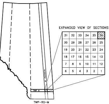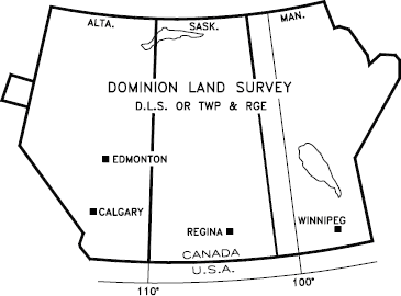 The Dominion Land Survey (DLS) system is used in the Canadian provinces of Alberta, Saskatchewan, Manitoba, and a small portion of British Columbia.