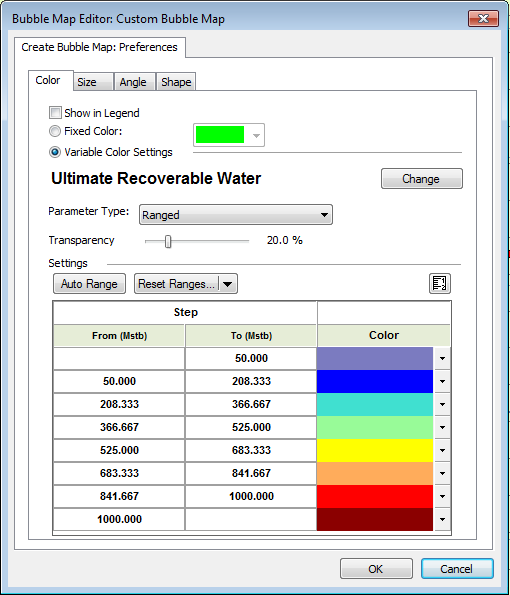 To edit an existing bubble map, right-click it in the tree structure and select Options. If you click Variable Color Settings, the Change button is enabled and you can set the <color> for a specific attribute.