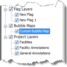 To show or hide the bubble map, select or deselect it in the tree structure.